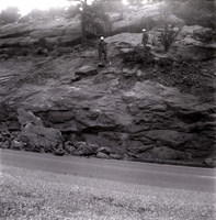 BW Photo of a rock slide along State Route 9 (SR-9). ; ZION Museum and Archives Image 107_06_16004 ; ZION 15933