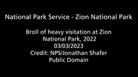 Video of visitors entering Zion by foot and by car, visitors waiting in line for the shuttle, and visitors waiting in line at the Temple of Sinawava