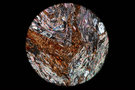 Circular microscopic image of rock structure.