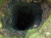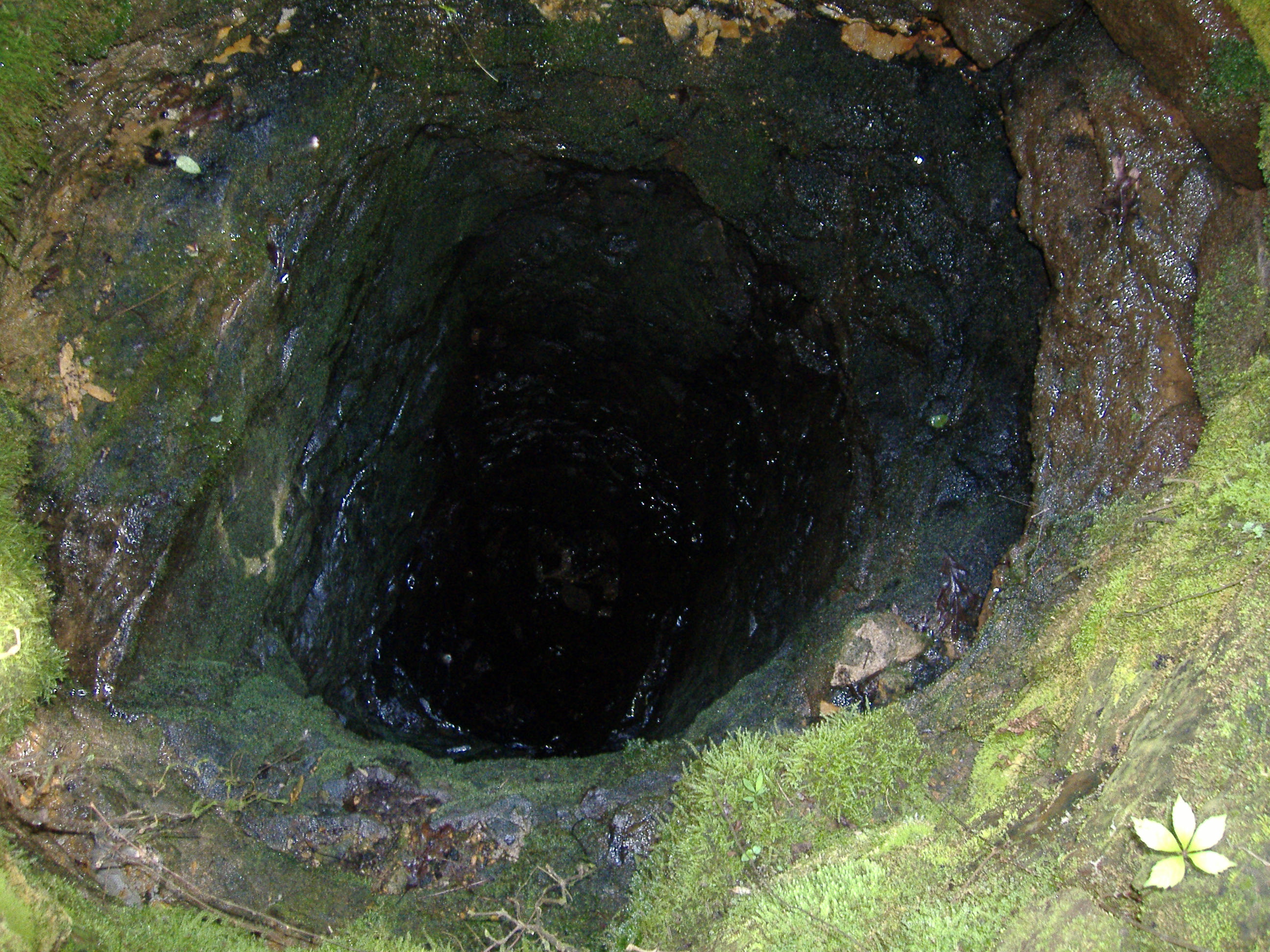 Three pictures of the same well. Pt. 1 During summer when well is hidden; Pt.2 During winter when well is not hidden, pt.3 Looking down 30 foot well.