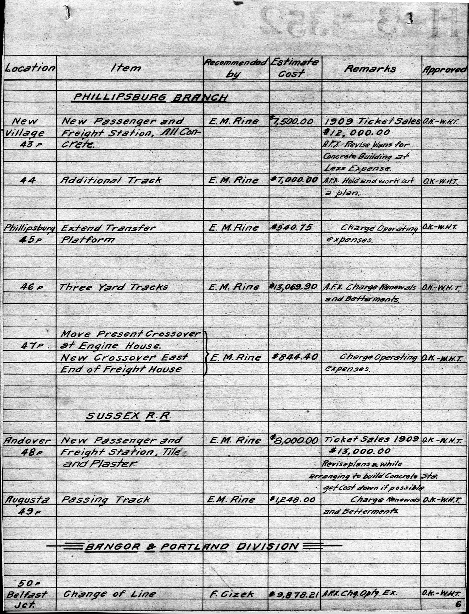 50780.BA#001--[GROUP 1] Proposed improvements for various divisions and branches--1910