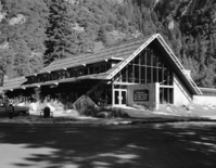 Subject: Two views of the Degnan-Donohoe Store and Restaurant in Yosemite Village (2 negatives). Location: Yosemite Valley. Purpose: For official negative file of Yosemite.