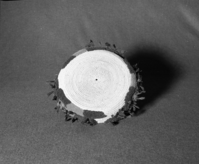 Private Collection. Object: Miwok basket. Dimensions: 4 1/2 x 2-3/4". Materials: Redbud & unidentified split shoot (possibly Ceanothus Intergermus). Technology: Pedestal of basket in single rod. Cup in three rod. In both cases, fag ends trimmed on work fac