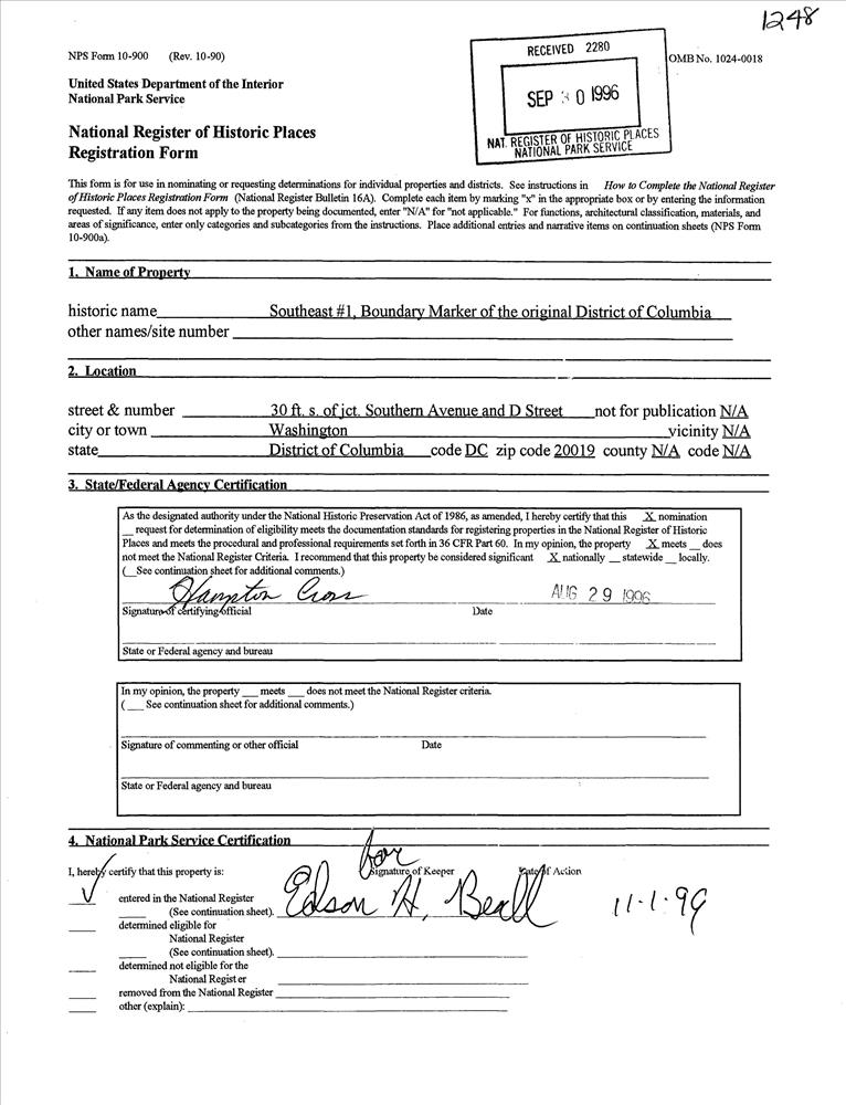 District of Columbia ; Washington ; 30 ft. S of jct. of Southern Ave. and D St.
