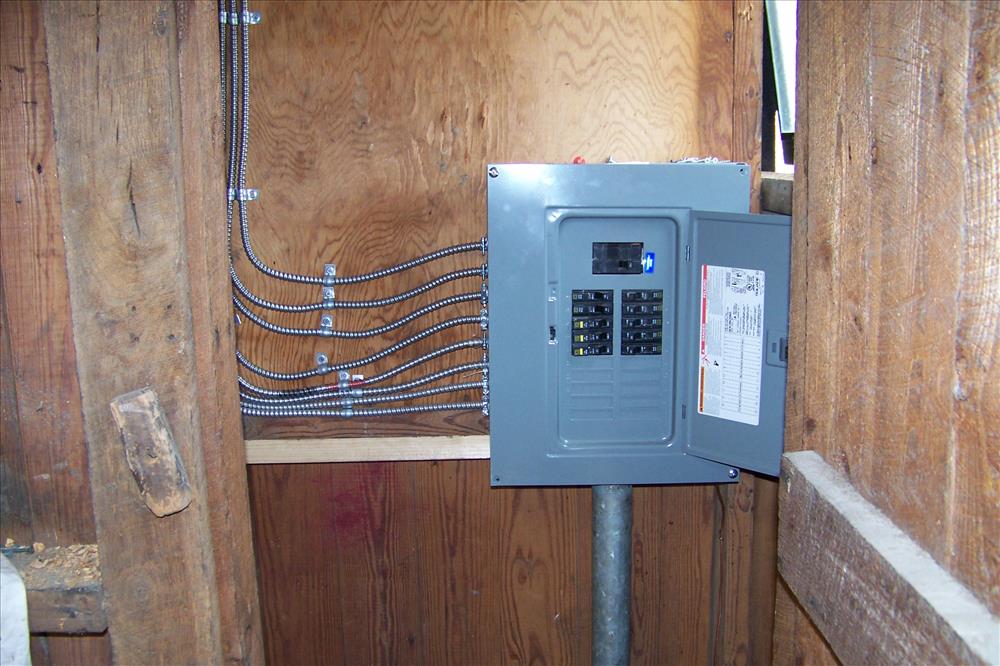 Interior image of new electrical box installed at Cabin Camp 4 Central Bath