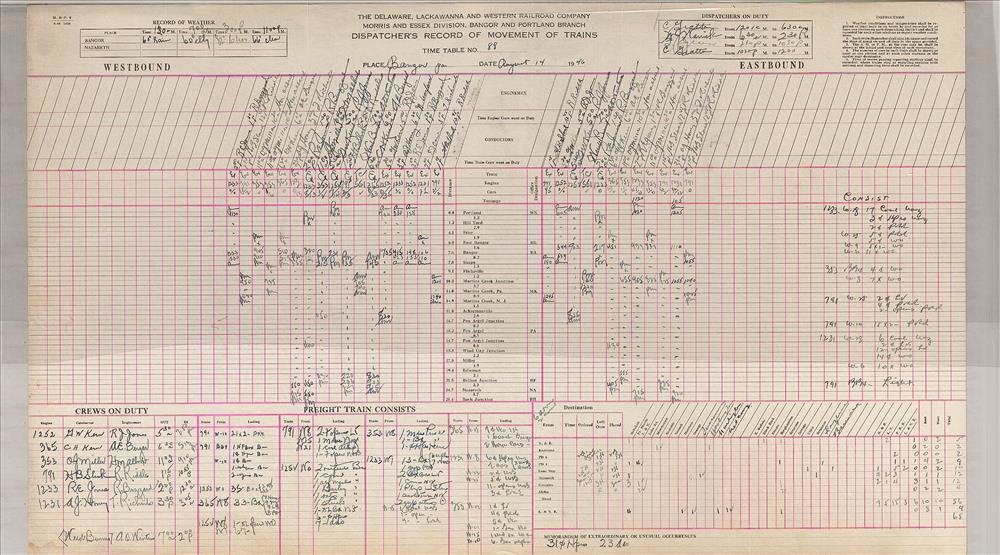 Dispatcher Sheets--Bangor & Portland Branch--Delaware, Lackawanna & Western Railroad [1946.08.01-1946.08.17]