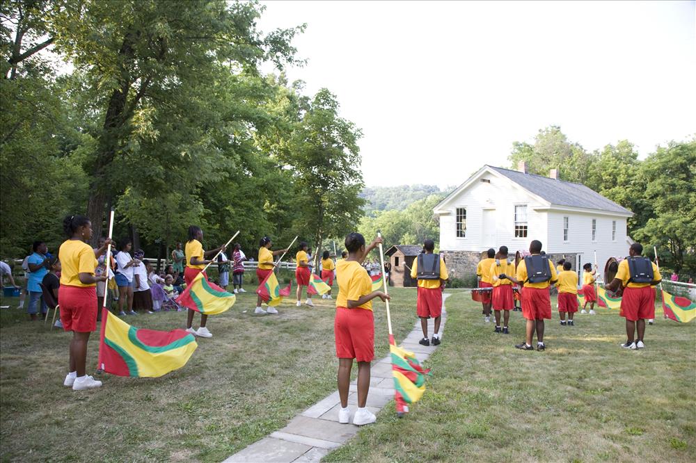 Cuyahoga Valley National Park (CVNP) and Cuyahoga Valley National Park Association present Get Up, Get Out & Go!, a campaign introducing recreational opportunities along the Ohio & Erie Canal Towpath Trail in Akron and the national park. The program targets residents in the urban neighborhoods surrounding the Towpath Trail in Akron which is a part of the larger Ohio & Erie Canalway, a national heritage area. Get Up, Get Out & Go! serves as an invitation for kids 11 to 14 years old and their families to give the Towpath Trail a try and to venture further along the trail into CVNP. || Visitors listen to an Akron youth marching band at the Get Up, Get Out, Go! kickoff event in June 2007.