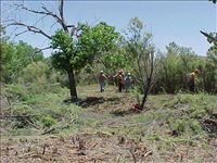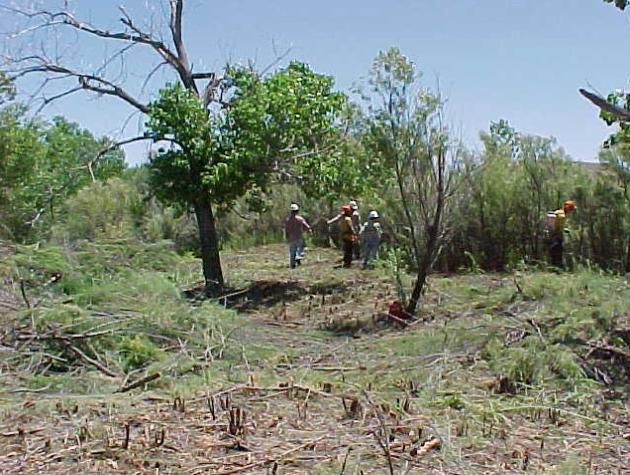 The Southern Plains Park Group was awarded funding through the Natural Resources Protection Program (NRPP) in FY 2000 to begin a long-term salt cedar eradication program. The primary goal was to remove approximately 6,000 acres of salt cedar around Lake Meredith NRA (LAMR) to improve water quality an quantity, allow native species to return, improve the threatened Arkansas River Shiner habitat by increasing stream flow, and provide for additional recreational usage and protection of visitor health and safety. Two primary objectives were to chemically treat and monitor salt cedar along streambeds, riverbanks, and the lake shoreline following the introduction of prescribed fire, and to perform chemical and mechanical treatments along streambeds, riverbanks, and the lake shoreline where salt cedar is not dominant. During FY00 to FY02 seasons, a 4-person Salt Cedar Reduction Crew treated a total of 832 acres of post-prescribed fire lands and 1,444 acres of mechanically treated lands, totaling 2,286 acres combined. Additionally, 1,500 acres of salt cedar is scheduled for burning and chemical treatment from FY03 to FY05.