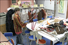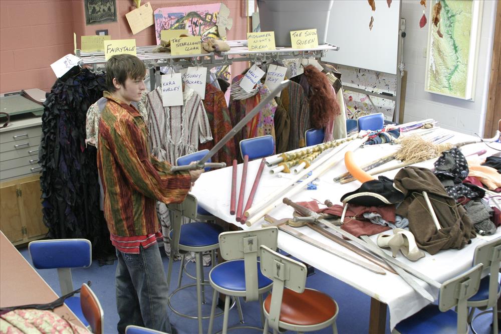 Since the mid-1990s, Cuyahoga Valley Environmental Education Center has offered a variety of summer residential camps. River Run - Theatre: "Fantasy in the Forest" is provided in partnership with Magical Theatre Company. Children entering grades 5-10 work with professional faculty to develop their performing arts skills in acting, voice, movement, and stage combat. The short performances are outdoors and integrate into the natural setting of the CVEEC campus. || Summer theatre campers get fitted for costumes.