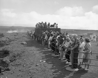 Visitors gather at the edge of Halemaʻumaʻu on February 24th, 1961