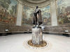 Statue of George Rogers Clark in a memorial's rotunda decorated with paintings of historical events