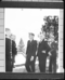 At doorway of old church at Bodie, CA. L to R: Carl Russell, Floyd Nourse and Alfred Knopf. Note: Floyd Nourse, 526 Viriginia Ave. San Mateo, CA. Alfred A Knopf, Inc. 501 Madison Ave, N.Y.C.