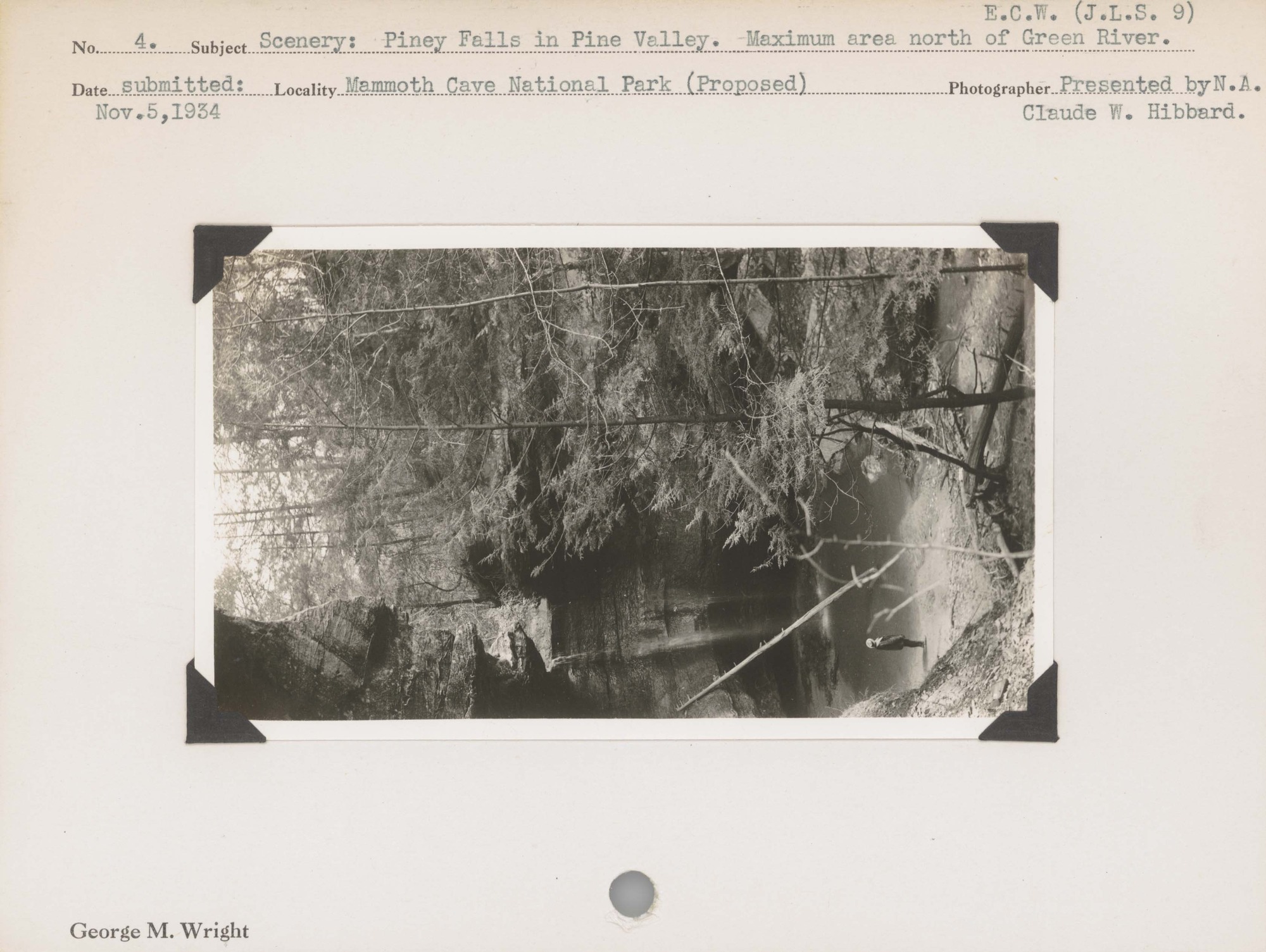 Scenery: Piney Falls in Pine Valley. Maximum area north of Green River. Negative #: E.C.W. [Emergency Conservation Work] JLS 9. Locality: Mammoth Cave National Park (Proposed).