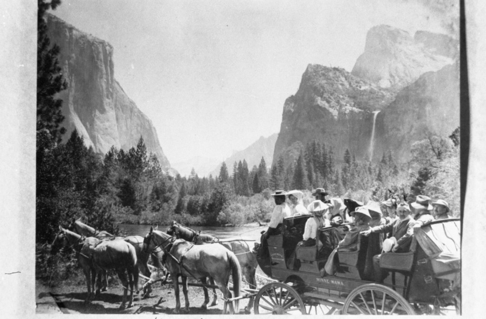 Copy Neg: May 1995 Leroy Radanovich. Wagon driving through Arch Rock. Donated to the Yosemite Museum by Aaron York.