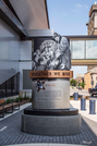 photo of a memorial that depicts a woman standing over a crowd of men, shaking their hands, and text that reads: Together We Rise