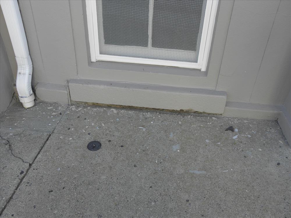 exterior wall at location of water damage, at sidewalk along Jackson Street