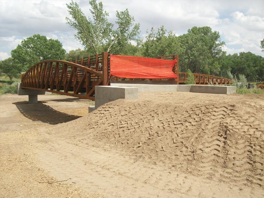 Photos of the bridge connecting AZRU and downtown Aztec built by the city in 2014. Photos were taken on June 18, when bridge was not completely finished. Metal is COR 10, which is supposed to be covered by a thin layer of rust as a protectant.