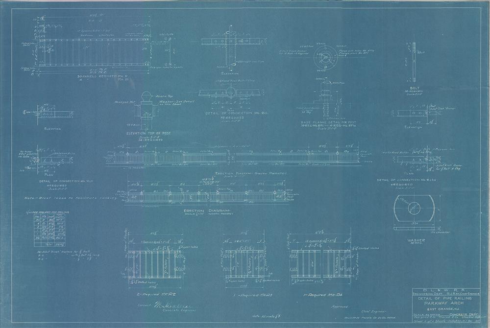 Parkway arch--Detail of pipe railing--East Orange, NJ [1921.12] Sheet no. 4 of 4