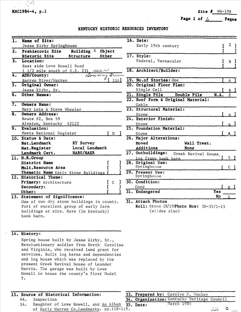 Kirby, Jesse, Springhouse