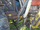 Photos show primitive protection for driver (mesh and wood), hydraulic hose leaks. and general body condition.
