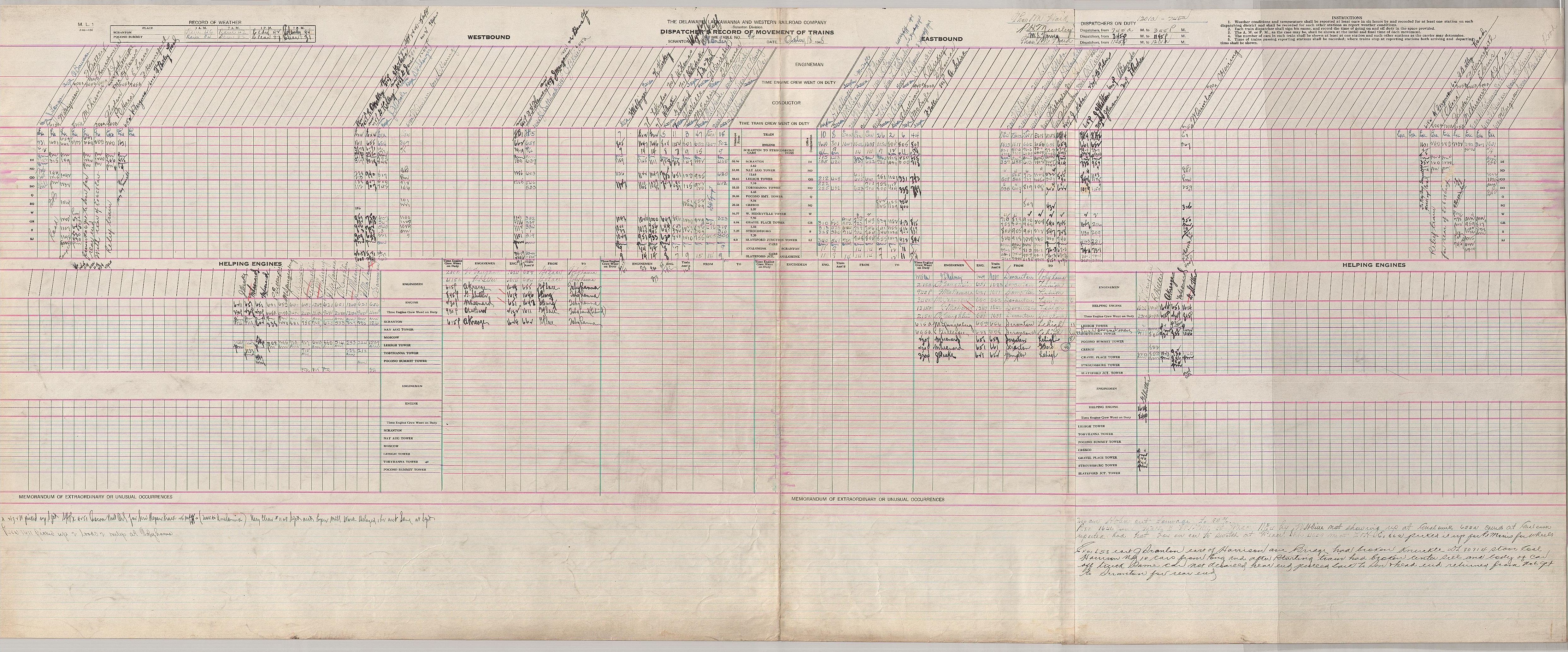 Dispatcher Sheets--Scranton Division--DL&W Railroad [1948.10.16-1948.10.23]