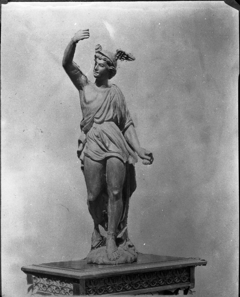 N.E. Beckwith, Unknown Date, Unknown Location, Misc. Named Giant Sequoias, Statue of Mercury carved from heart of General Noble Tree. Artist Unknown.