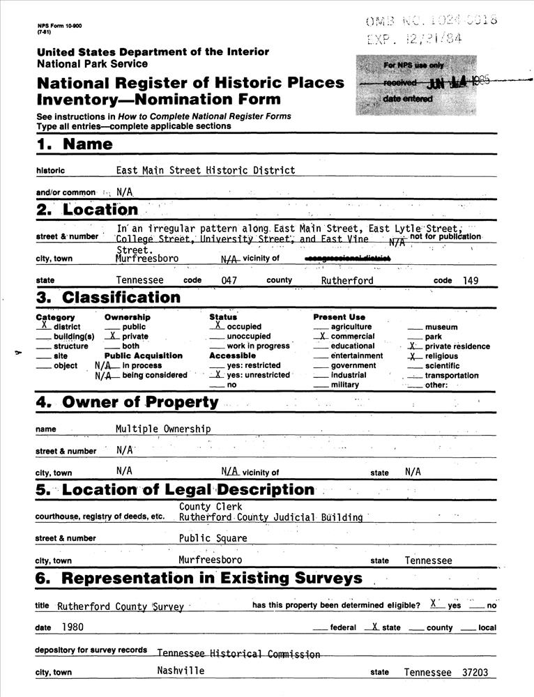 Murfreesboro ; Roughly E. Main, E. Lytle, College, University and E. Vine Sts.