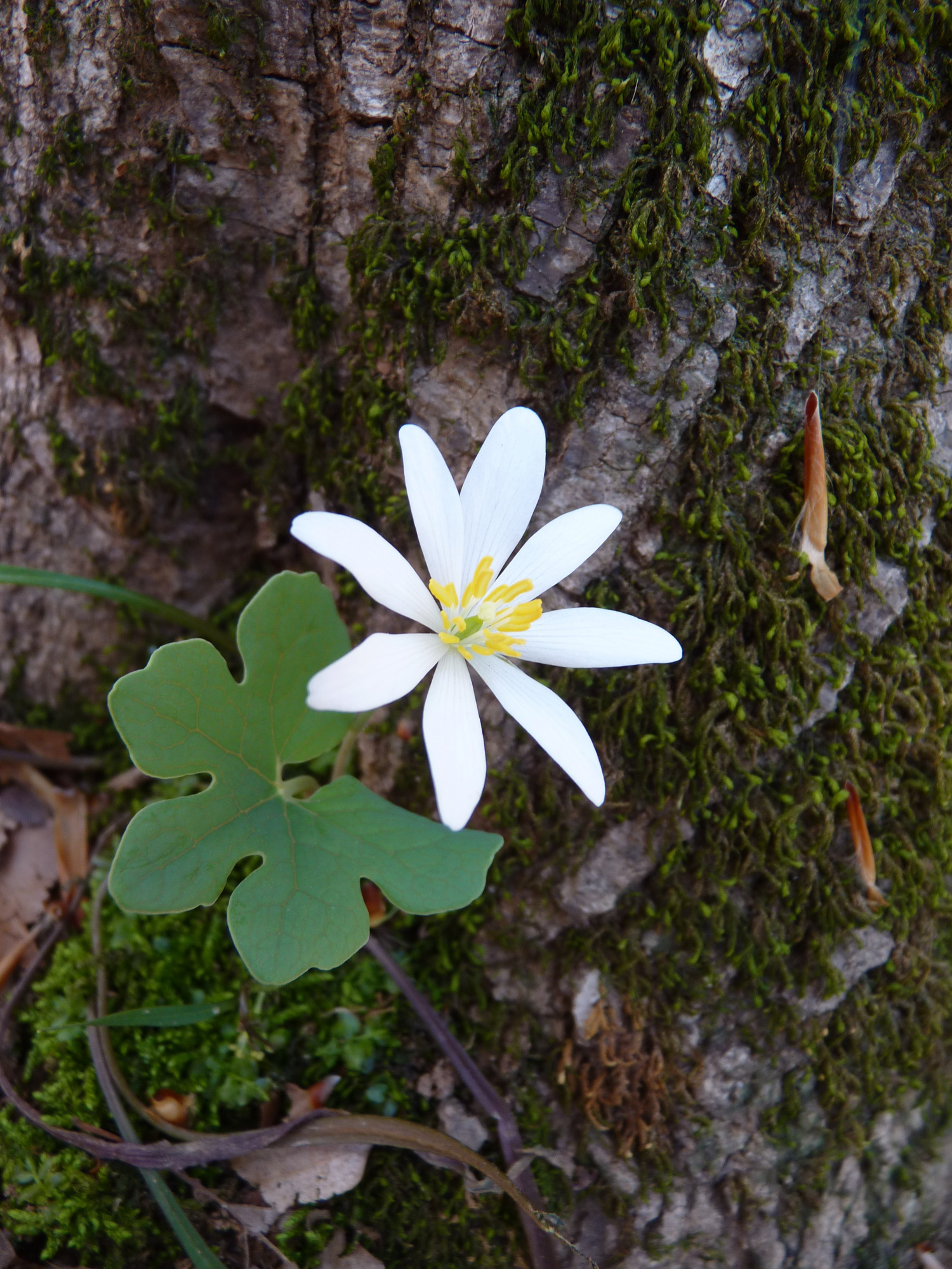 Bloodroot ; Sanguinaria canadensis; in bloom.Photographer: Matt Jones