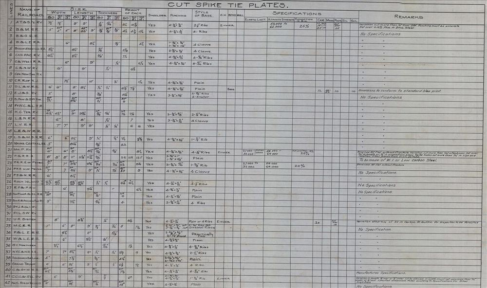 Comparitive track hardware specifications of 40 railroads