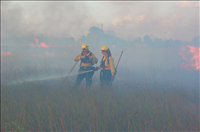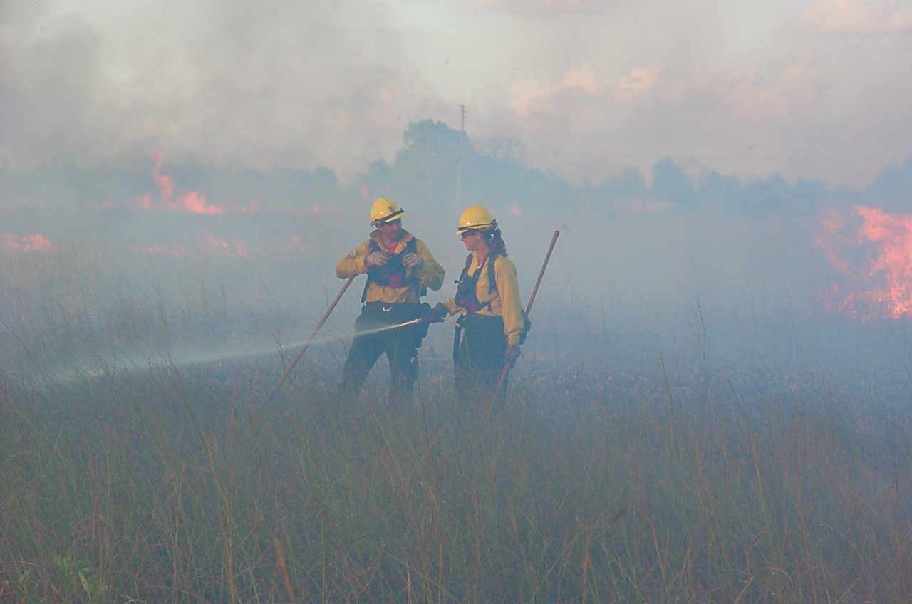 Prescribed burning is an important tool in managing fuels and vegetation in Everglades National Park. Using a variety of tools and equipment, firefighters plan, ignite, monitor and extinguish fires. These images taken in 2002 capture firefighters in action.