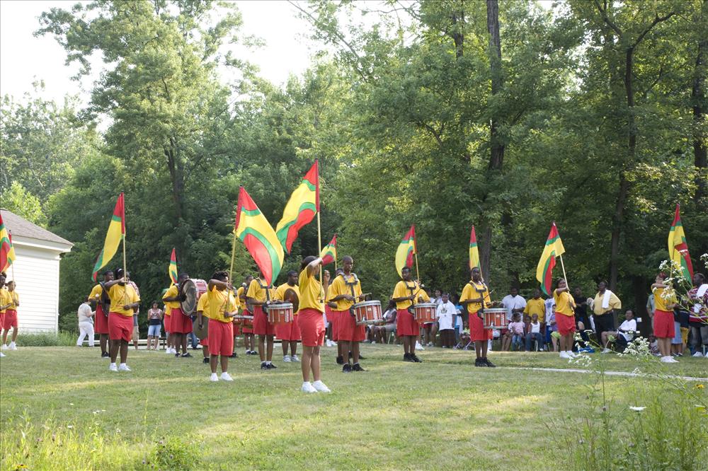 Cuyahoga Valley National Park (CVNP) and Cuyahoga Valley National Park Association present Get Up, Get Out & Go!, a campaign introducing recreational opportunities along the Ohio & Erie Canal Towpath Trail in Akron and the national park. The program targets residents in the urban neighborhoods surrounding the Towpath Trail in Akron which is a part of the larger Ohio & Erie Canalway, a national heritage area. Get Up, Get Out & Go! serves as an invitation for kids 11 to 14 years old and their families to give the Towpath Trail a try and to venture further along the trail into CVNP. || Visitors listen to an Akron youth marching band at the Get Up, Get Out, Go! kickoff event in June 2007.