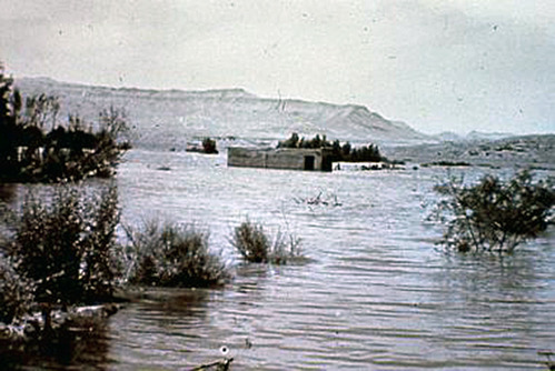 As the waters rise, the St Thomas Garage ins being inundated.