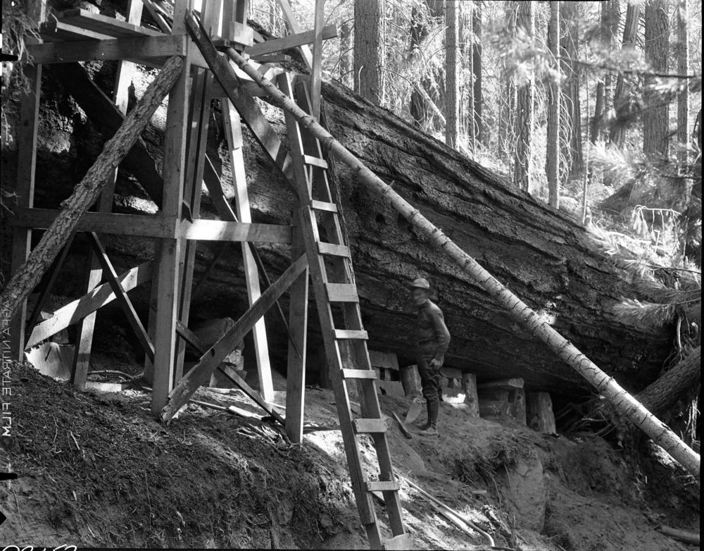 Unknown Photographer, 341114, Atwell Mill, SNP, Giant Sequoia Sections, cutting section for San Diego Exposition. Individual unidentified.