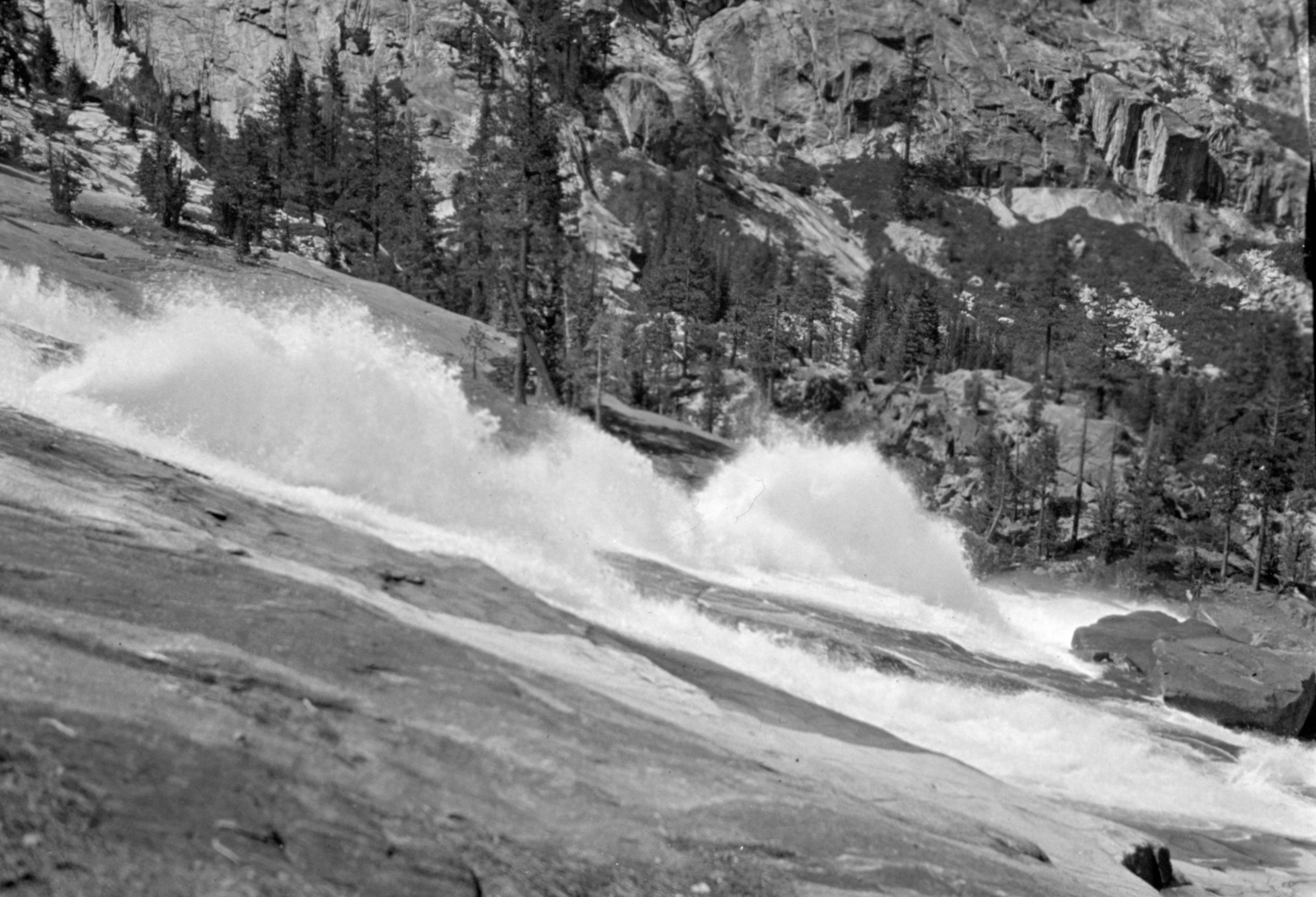 Group at Waterwheel Falls. Left to right: Howard Cofer, Nat.; Miss Kittredge; Mrs. F. Kittredge; Mary Gage; Louis Clark, Ranger; Frank Kittredge; Carol Brockman; Ranger MacIntyre.