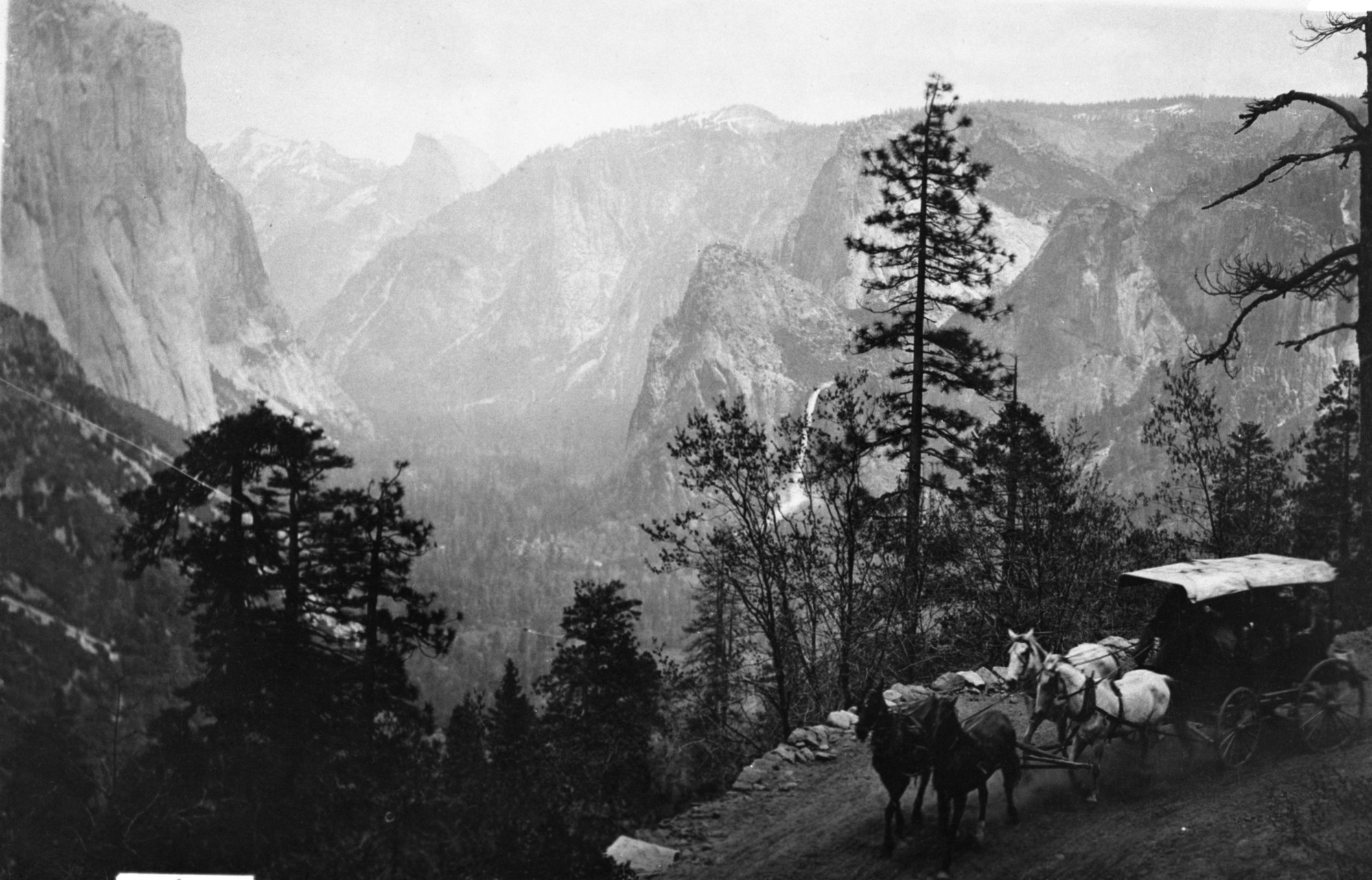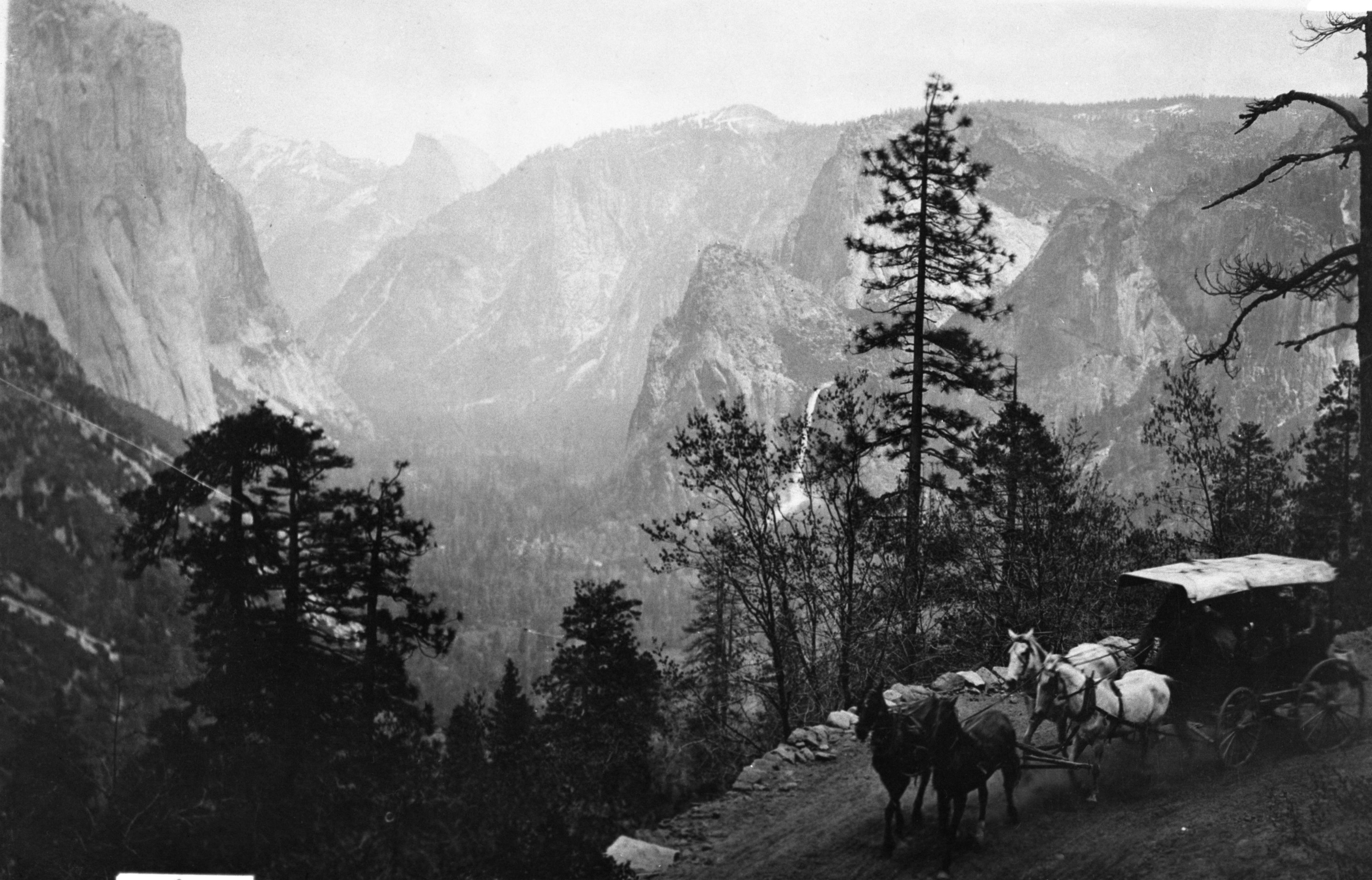 Copy Neg: May 1995 Leroy Radanovich. Wagon driving through Arch Rock. Donated to the Yosemite Museum by Aaron York.