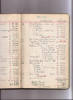 Some of the markings made in pencil in these cash books were made by ENHS Curator Leah Burt during the 1970s and/or early 1980s. For Leah Burt handwriting examples see pages for: December 19, 1921 (cash book 17) ; February 12, 1923 (cash book 17) ; October 27, 1924 (cash book 18) ; December 01, 1925 (cash book 19).