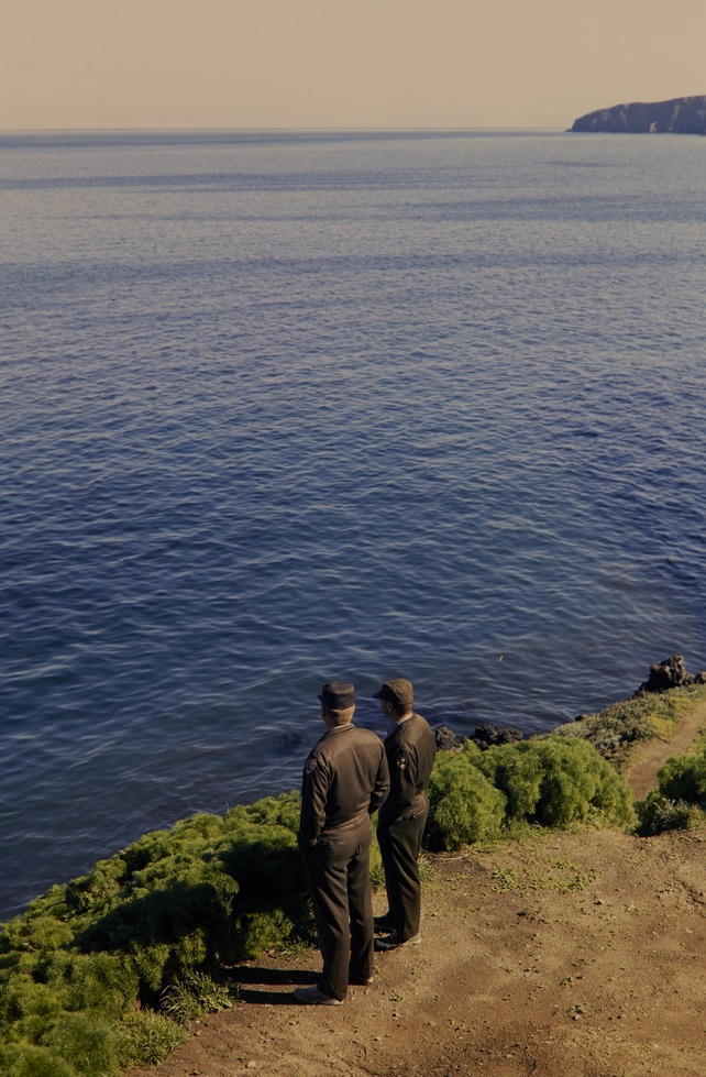 Two NPS employees looking out at the ocean on Channel Islands National Park.