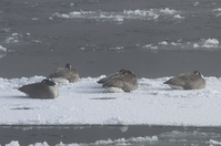 Canada geese on ice in the Yellowstone River;