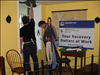 All pictures represent the installation of the interior storm window and exterior shutters.