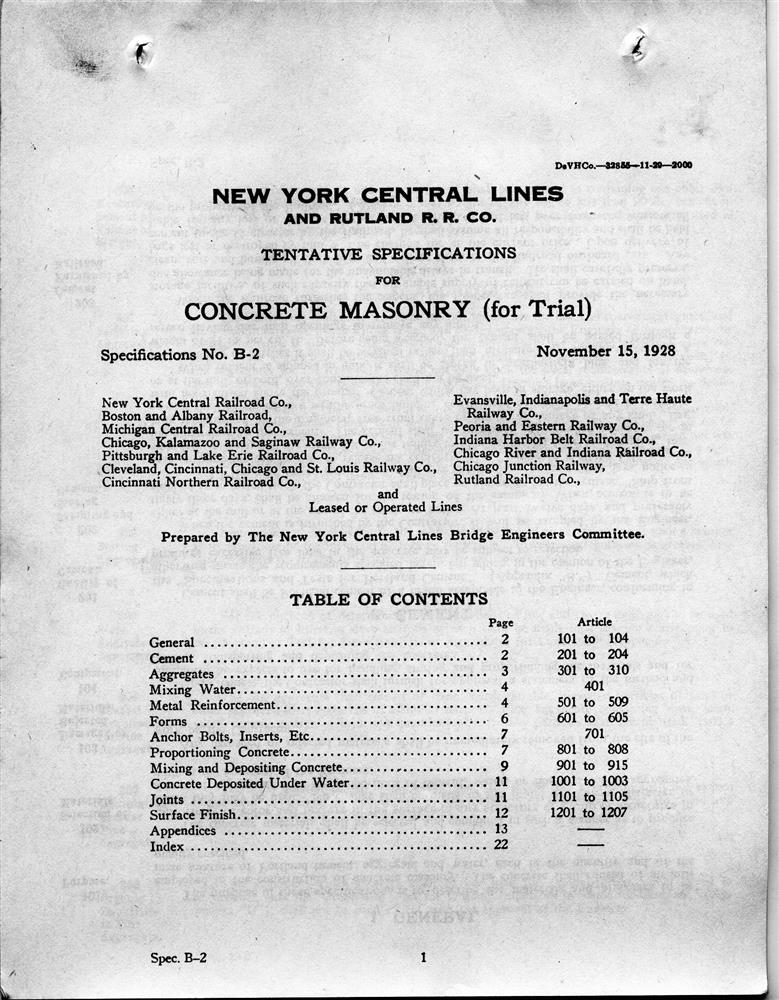 56788.PA#004--New York Central Lines And Rutland Railroad Company--Specifications for concrete masonry (for trial) [no. B-2] [1928.11.15] Pagfes 1 thru 15