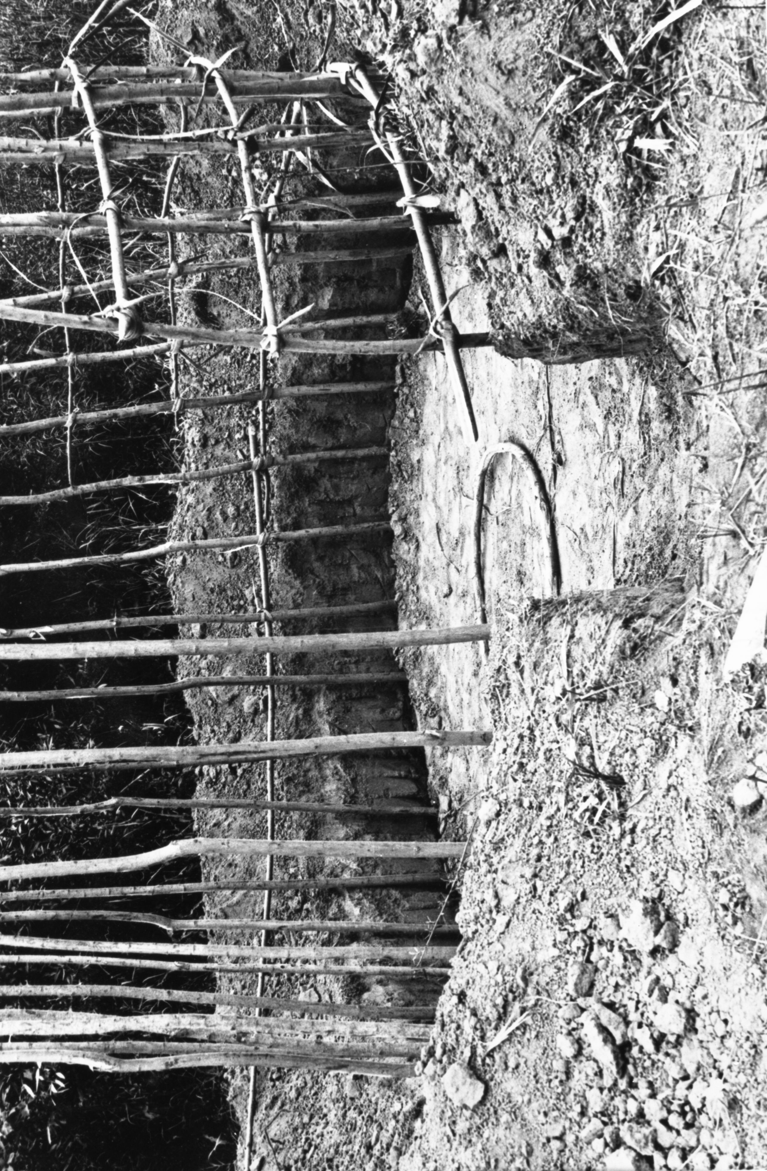 Copy Neg: April 2001, L. Radanovich. House framework. Copied from the Frank Latta photo collection in the Yosemite Museum (Box 6, House-Native Americans file).