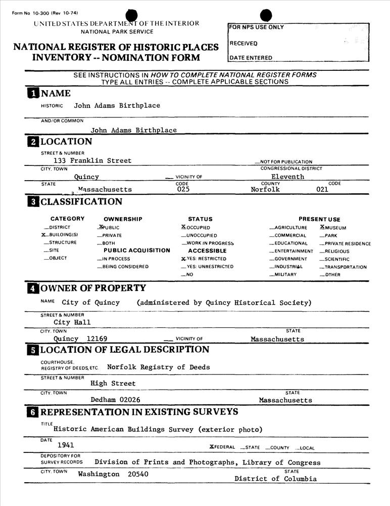 Adams, John, Birthplace