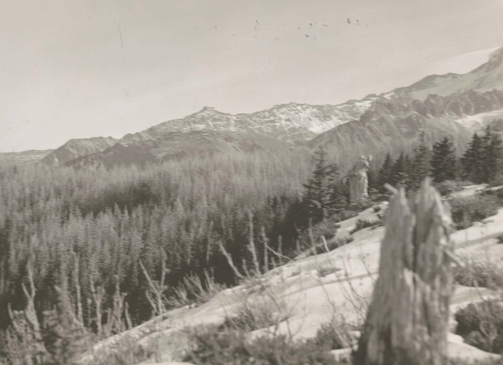 Forest Fires – Panoramic of 6 pictures showing burned area. Negative #: 4989g. Locality: Mount Rainier National Park. [This information comes from the reverse of the envelope and refers to negative number 4989b to 4989g]