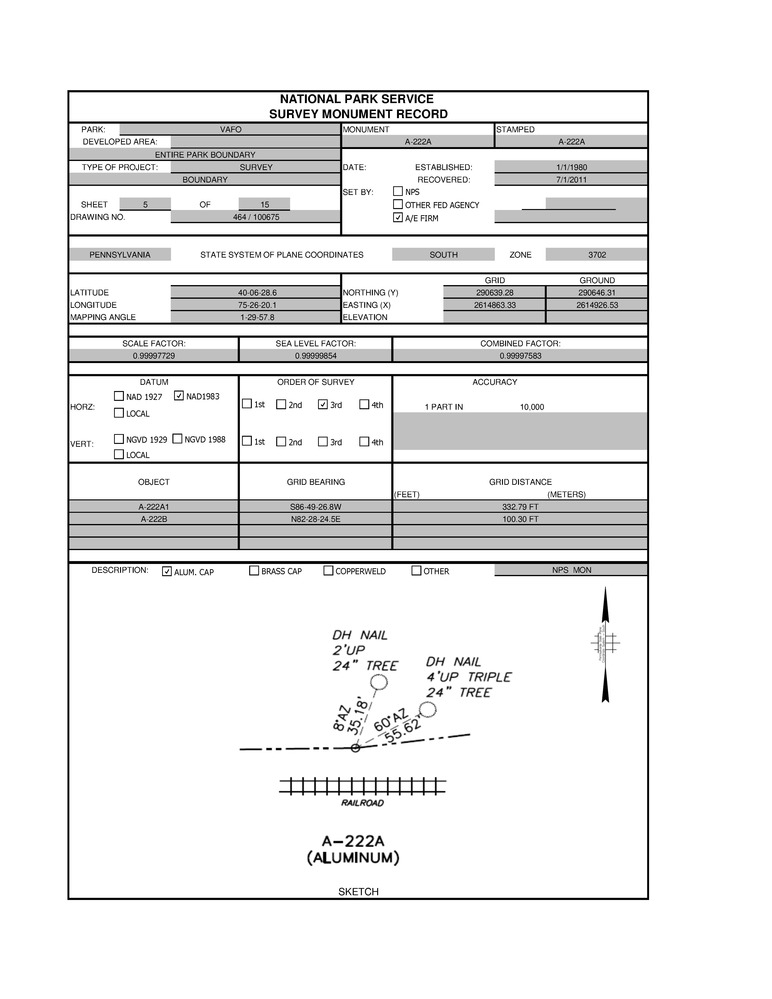 VAFO A-222A NPS Survey Monument Record Sheet pdf