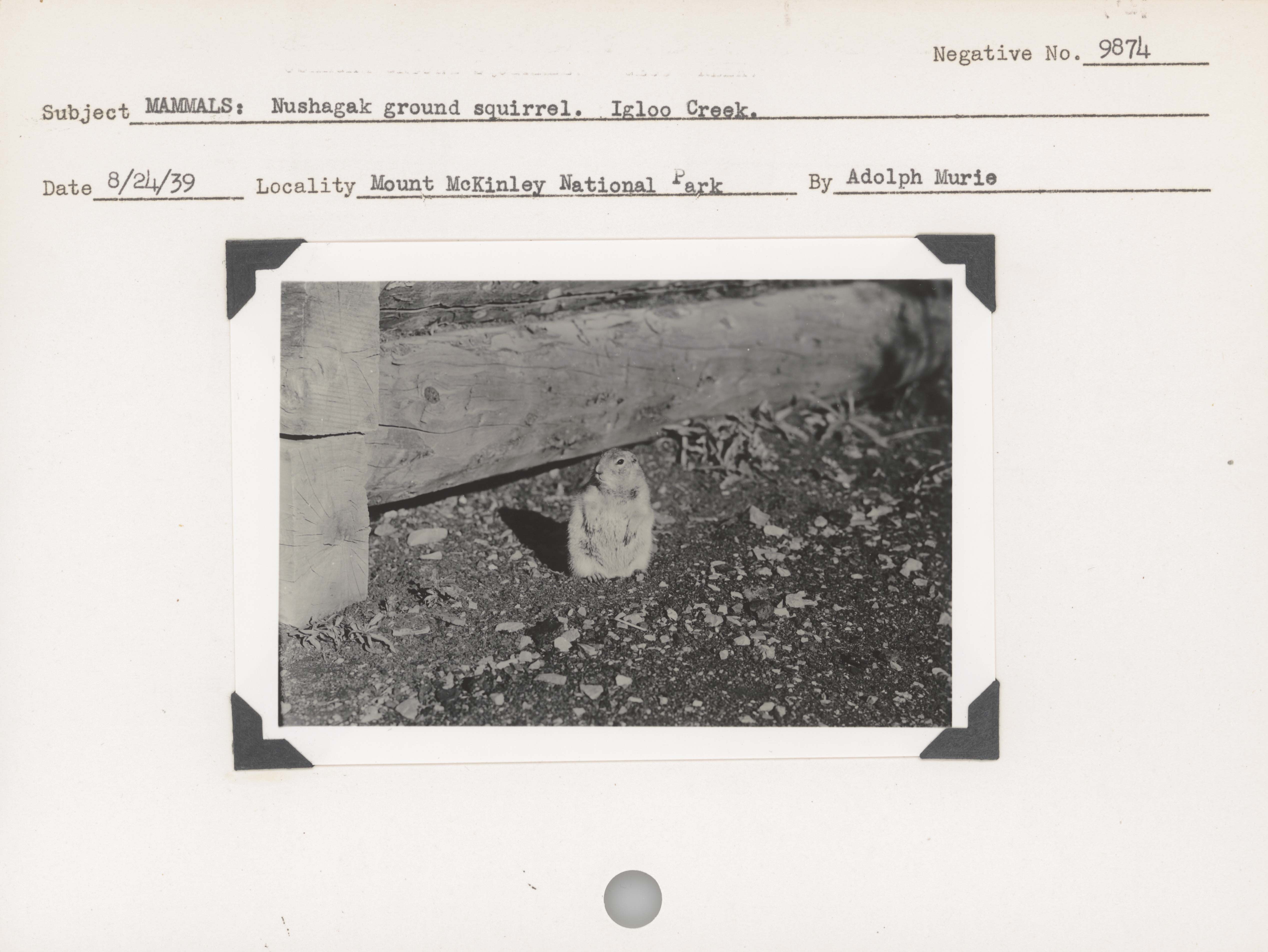 Mammals--Nushagak ground squirrel. Locality: Igloo Creek, Mount McKinley Park, Alaska [Denali National Park & Preserve]. Negative #: 9874