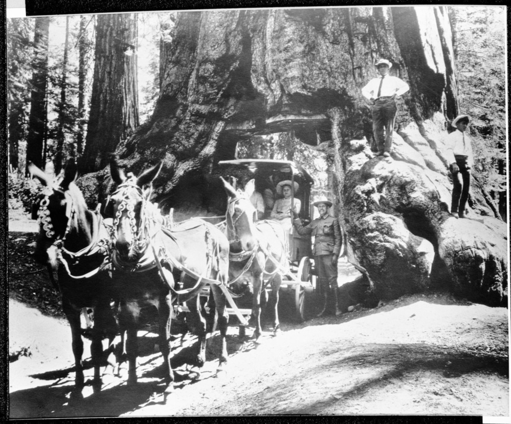 Copy Neg: May 1995 Leroy Radanovich. Wagon driving through Arch Rock. Donated to the Yosemite Museum by Aaron York.