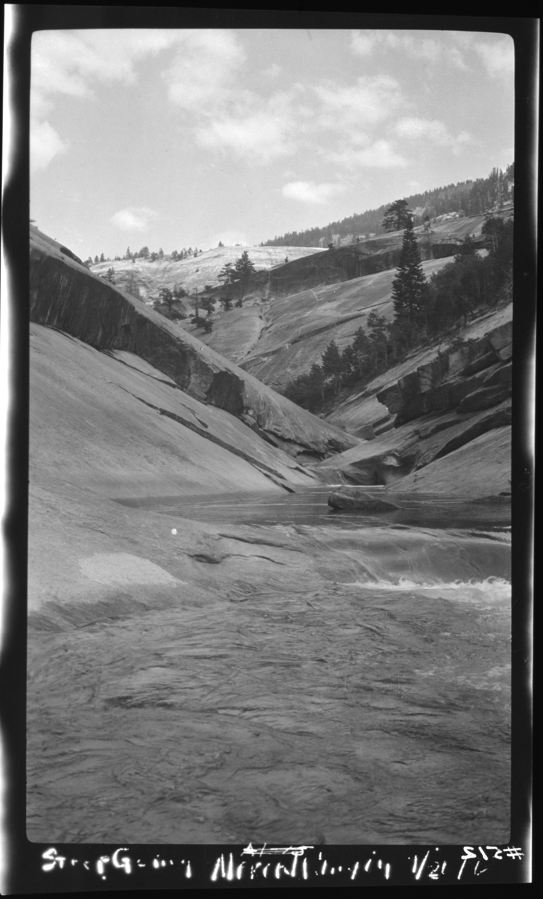 Merced Canyon with wall west of Fireplace Rock. From west of tunnel.