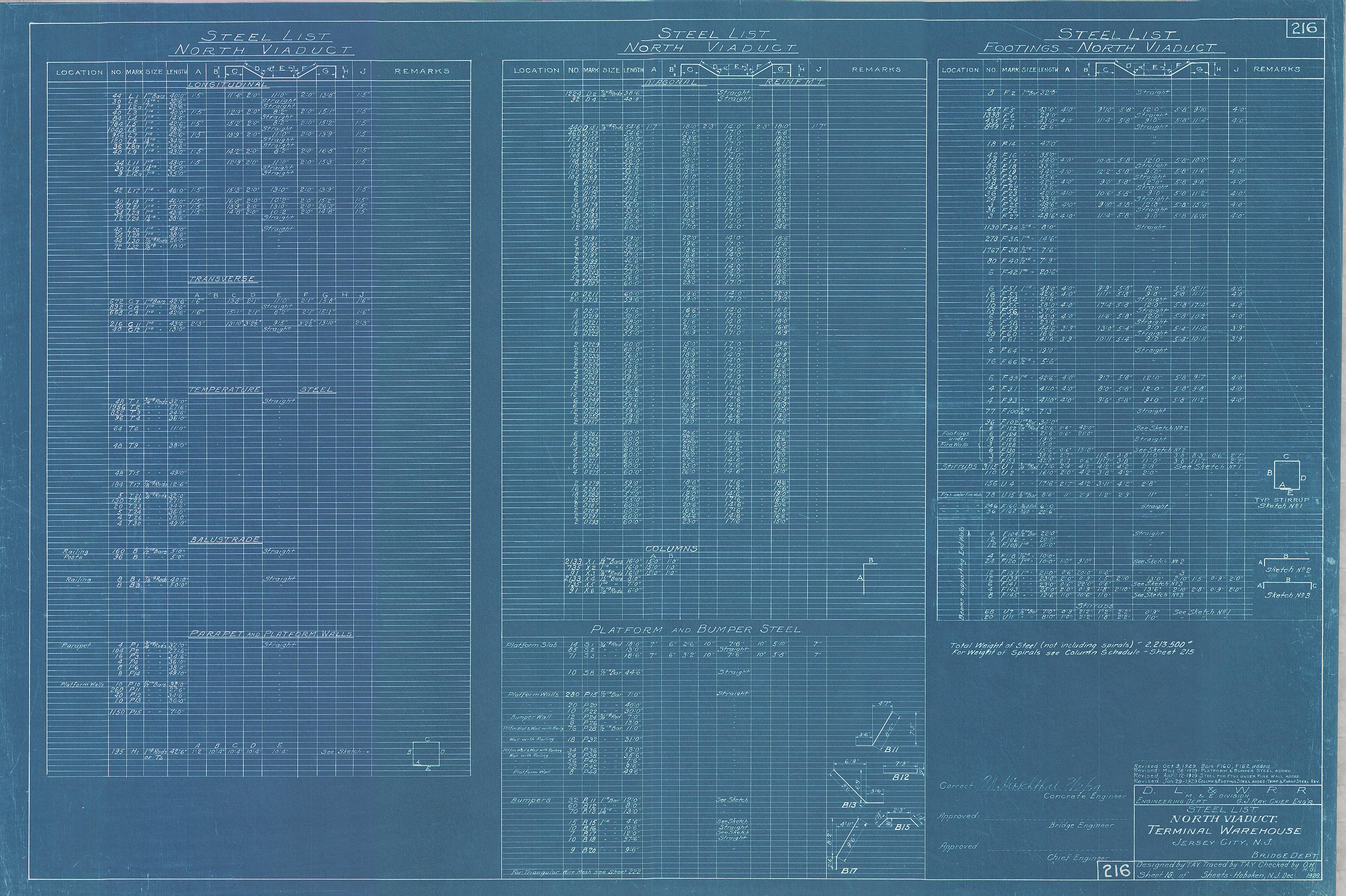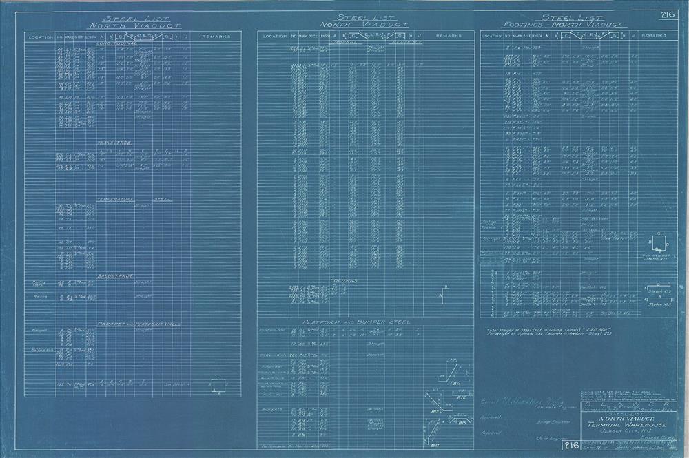 016 Terminal Warehouse--Steel list North Viaduct--North and South Viaducts--Jersey City, NJ [1929.10.03] Sheet no. 216
