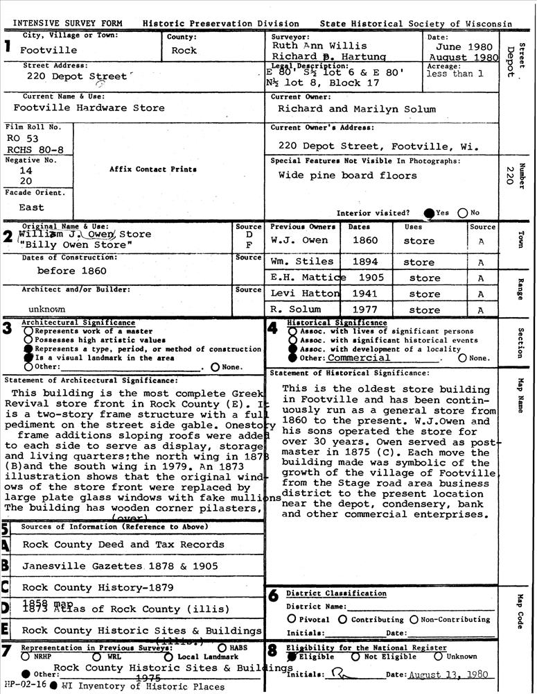 Footville ; 220 Depot St.