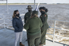From left to right: (DOD) Deputy Secretary of Defense Kathleen Hicks, (NPS) Acting Superintendent, Colonial National Historical Park and Captain John Smith National Historic Trail, Steven Williams, (NPS) Superintendent, Chesapeake Bay Program Office, Wendy O’Sullivan, (NPS) Superintendent, Harriet Tubman Underground Railroad National Historical Park, Deanna Mitchell having a conversation on the vessel A.V. Sandusky.